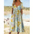 Printed V-neck button short sleeved dress with women's pockets and long skirt m300028
