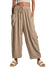 Elastic waist pleated middle waist straight pants loose casual cotton and linen nine-point pants m301883