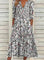 Printed V-neck button short sleeved dress with women's pockets and long skirt m300028
