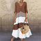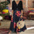V-neck Short Sleeve Printed Long Dress Button Casual Skirt M300187