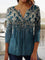 Printed V-neck short sleeve pleated button T-shirt bottoming shirt m300032