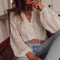 Solid color hollow loose long-sleeved top simple wind single row multi-button lining m301331